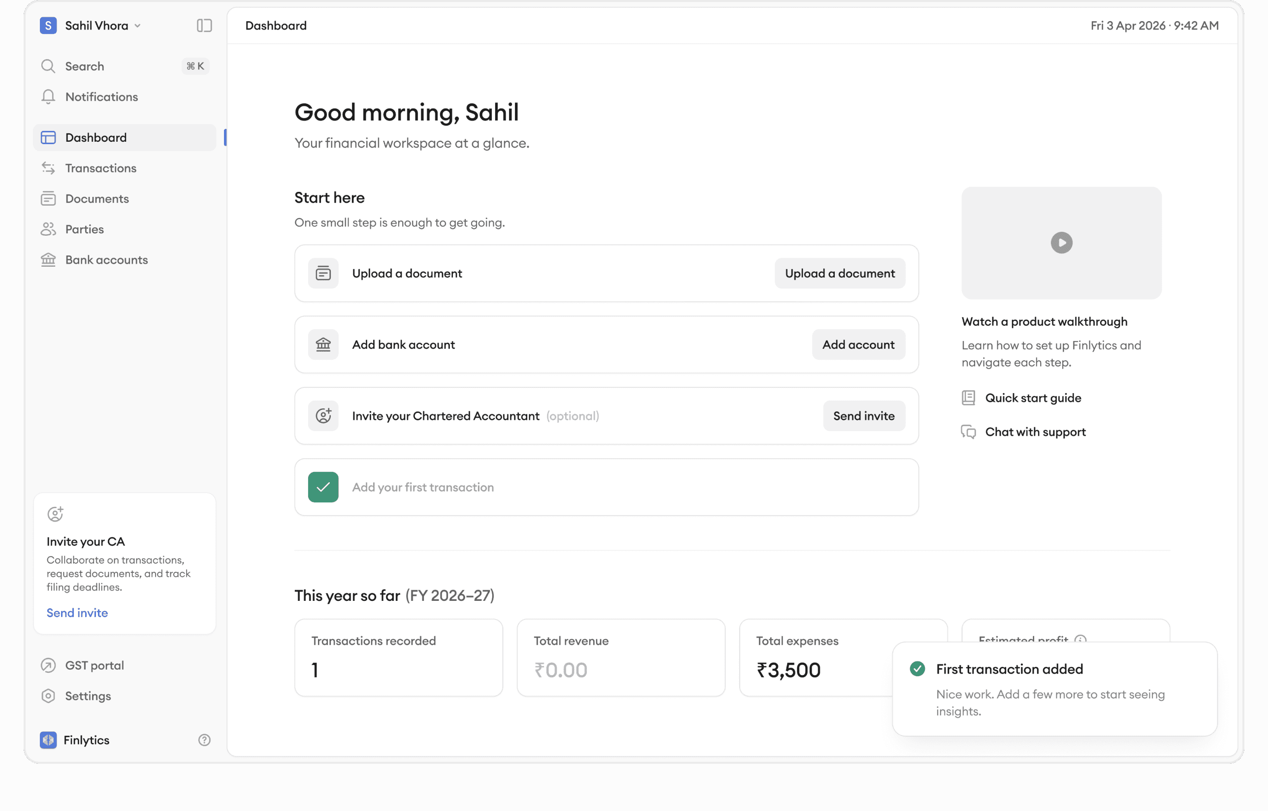Simplified complex accounting and compliance workflows into an intuitive product for SMBs with seamless CA collaboration.